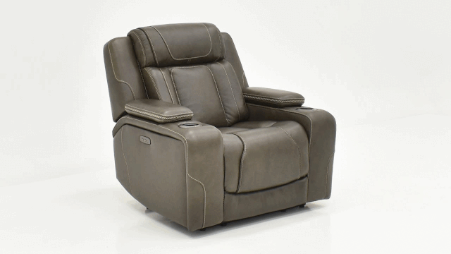 The Bentley Power Recliner, upholstered in luxurious leather with plush cushioning, ample seating, supportive backrest, discreet storage compartments, built-in cupholders, and a side power reclining mechanism, combines modern style with ultimate comfort.