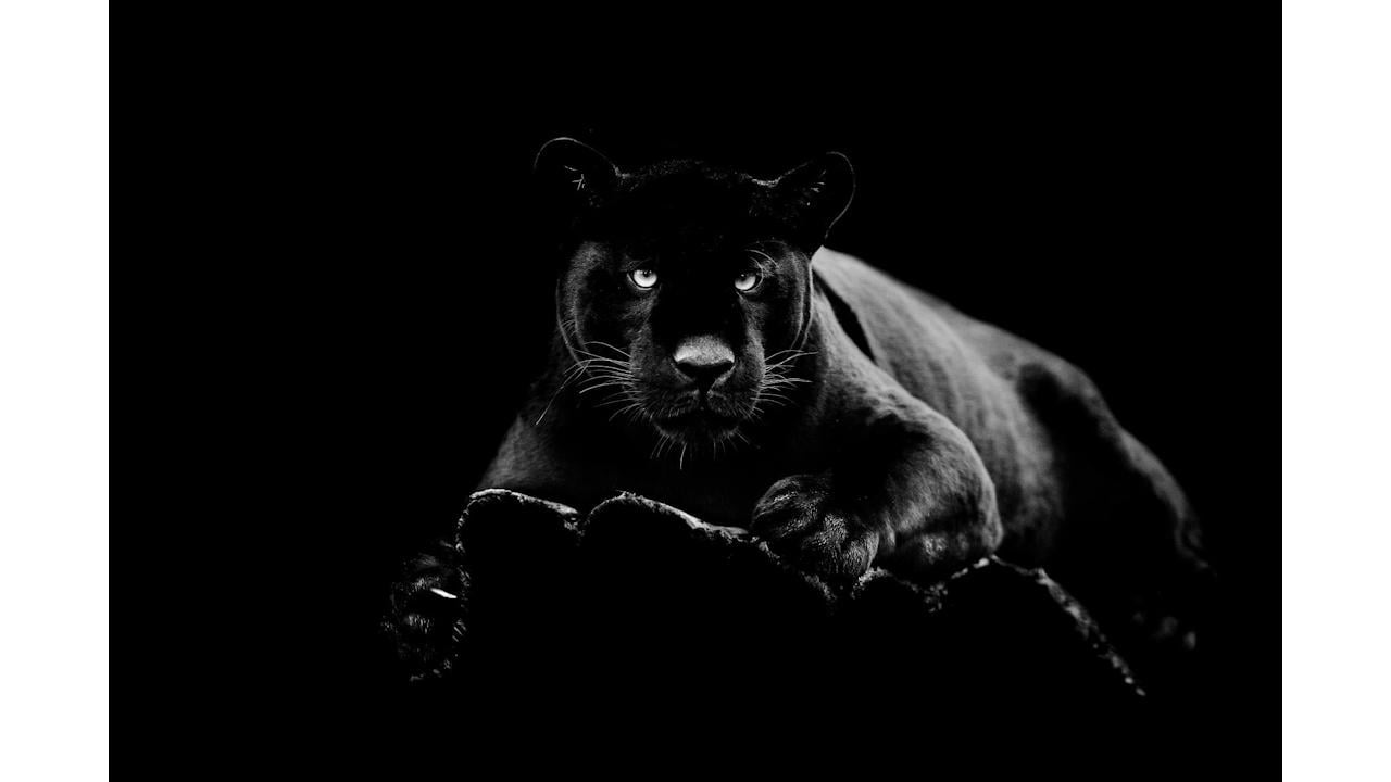 This 40" x 60" Black Panther Wall Art features striking foil accents beneath tempered glass.