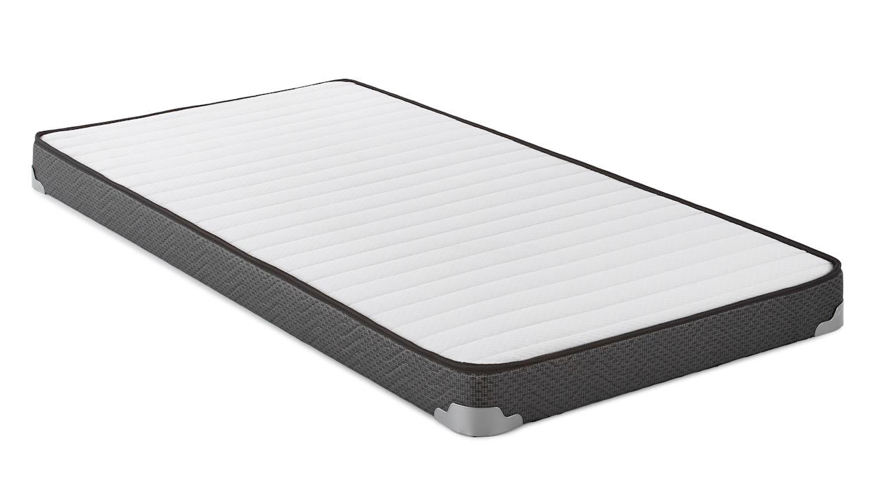 The Bunkie Mattress features seven 1' x 3' slats, 5 side and center supports, and is handcrafted with glue and 1.5' brad staples for reduced noise and enhanced support, with a construction of 1' wood and 4' CertiPur foam.