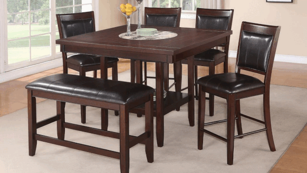 </strong></span>\r\n<ul>\r\n<li>Includes table, bench, and 4 barstools</li>\r\n<li>Dark brown finish</li>\r\n<li>Upholsterd barstools with chair backs</li>\r\n<li>Upholstered bench</li>\r\n<li>Storage under table</li>\r\n<li>Lazy Susan on table-top</li>\r\n<li>Counter height (Table 34\" - 36\")</li>\r\n</ul>\r\n<br />The simplistic design of the counter height Fulton 6 Piece Dining Table Set with Bench blends well with any home's decor. Featuring stylishly upholstered barstools with chair backs and bench that are covered in a rich brown finish. A built-in Lazy Susan on the tabletop and the storage space beneath bring a touch of convenience and functionality to the Fulton Dining Collection. Fulton 6 Piece Dining Table Set price includes table, bench, and 4 barstools.<br /><br />\r\n<h3>Dimensions</h3>\r\n<table class=\"dimension-table\">\r\n<tbody>\r\n<tr>\r\n<th>Item</th>\r\n<th>Height</th>\r\n<th>Width</th>\r\n<th>Depth</th>\r\n</tr>\r\n<tr>\r\n<td>Table</td>\r\n<td>35.50</td>\r\n<td>48</td>\r\n<td>48</td>\r\n</tr>\r\n<tr>\r\n<td>Barstool </td>\r\n<td>41</td>\r\n<td>18</td>\r\n<td>22</td>\r\n</tr>\r\n<tr>\r\n<td>Bench</td>\r\n<td>25</td>\r\n<td>40</td>\r\n<td>17</td>\r\n</tr>\r\n</tbody>\r\n</table>\r\n</div>\r\n<div class=\"data-product-videos\" data-product-videos=\"[["jpb7904f5h"]]\"></div>","isSoftKitOrContainsAddons":true,"price":999.99,"priceFormatted":"$999.99","oldPrice":999.99,"oldPriceFormatted":"$999.99","discountedPrice":999.99,"discountedPriceFormatted":"$999.99","msrp":1499.99,"msrpFormatted":"$1,499.99","callForPrice":false,"stockQuantity":4,"displayStockAvailability":true,"displayStockQuantity":false,"stockMessage":"In Stock Now","minStockQty":2,"currencyCode":"USD","defaultPictureModel":{"ImageUrl":"https://cdn.homefurn.com/thumbs/0524922_fulton-6-piece-dining-set-brown_1400.jpeg","ThumbImageUrl":"https://cdn.homefurn.com/thumbs/0524922_fulton-6-piece-dining-set-brown_100.jpeg","FullSizeImageUrl":"https://cdn.homefurn.com/thumbs/0524922_fulton-6-piece-dining-set-brown.jpeg","Title":"Picture of Fulton 6-Piece Dining Set - Brown","AlternateText":"Picture of Fulton 6-Piece Dining Set - Brown","Id":0,"CustomProperties":{}},"pictureModels":[{"ImageUrl":"https://cdn.homefurn.com/thumbs/0524922_fulton-6-piece-dining-set-brown_1400.jpeg","ThumbImageUrl":"https://cdn.homefurn.com/thumbs/0524922_fulton-6-piece-dining-set-brown_100.jpeg","FullSizeImageUrl":"https://cdn.homefurn.com/thumbs/0524922_fulton-6-piece-dining-set-brown.jpeg","Title":"Picture of Fulton 6-Piece Dining Set - Brown","AlternateText":"Picture of Fulton 6-Piece Dining Set - Brown","Id":0,"CustomProperties":{}},{"ImageUrl":"https://cdn.homefurn.com/thumbs/0035501_fulton-6-piece-dining-set-brown_1400.jpeg","ThumbImageUrl":"https://cdn.homefurn.com/thumbs/0035501_fulton-6-piece-dining-set-brown_100.jpeg","FullSizeImageUrl":"https://cdn.homefurn.com/thumbs/0035501_fulton-6-piece-dining-set-brown.jpeg","Title":"Picture of Fulton 6-Piece Dining Set - Brown","AlternateText":"Picture of Fulton 6-Piece Dining Set - Brown","Id":0,"CustomProperties":{}},{"ImageUrl":"https://cdn.homefurn.com/thumbs/0035502_fulton-6-piece-dining-set-brown_1400.jpeg","ThumbImageUrl":"https://cdn.homefurn.com/thumbs/0035502_fulton-6-piece-dining-set-brown_100.jpeg","FullSizeImageUrl":"https://cdn.homefurn.com/thumbs/0035502_fulton-6-piece-dining-set-brown.jpeg","Title":"Picture of Fulton 6-Piece Dining Set - Brown","AlternateText":"Picture of Fulton 6-Piece Dining Set - Brown","Id":0,"CustomProperties":{}},{"ImageUrl":"https://cdn.homefurn.com/thumbs/0035503_fulton-6-piece-dining-set-brown_1400.jpeg","ThumbImageUrl":"https://cdn.homefurn.com/thumbs/0035503_fulton-6-piece-dining-set-brown_100.jpeg","FullSizeImageUrl":"https://cdn.homefurn.com/thumbs/0035503_fulton-6-piece-dining-set-brown.jpeg","Title":"Picture of Fulton 6-Piece Dining Set - Brown","AlternateText":"Picture of Fulton 6-Piece Dining Set - Brown","Id":0,"CustomProperties":{}},{"ImageUrl":"https://cdn.homefurn.com/thumbs/0035504_fulton-6-piece-dining-set-brown_1400.jpeg","ThumbImageUrl":"https://cdn.homefurn.com/thumbs/0035504_fulton-6-piece-dining-set-brown_100.jpeg","FullSizeImageUrl":"https://cdn.homefurn.com/thumbs/0035504_fulton-6-piece-dining-set-brown.jpeg","Title":"Picture of Fulton 6-Piece Dining Set - Brown","AlternateText":"Picture of Fulton 6-Piece Dining Set - Brown","Id":0,"CustomProperties":{}},{"ImageUrl":"https://cdn.homefurn.com/thumbs/0035505_fulton-6-piece-dining-set-brown_1400.jpeg","ThumbImageUrl":"https://cdn.homefurn.com/thumbs/0035505_fulton-6-piece-dining-set-brown_100.jpeg","FullSizeImageUrl":"https://cdn.homefurn.com/thumbs/0035505_fulton-6-piece-dining-set-brown.jpeg","Title":"Picture of Fulton 6-Piece Dining Set - Brown","AlternateText":"Picture of Fulton 6-Piece Dining Set - Brown","Id":0,"CustomProperties":{}},{"ImageUrl":"https://cdn.homefurn.com/thumbs/0035506_fulton-6-piece-dining-set-brown_1400.jpeg","ThumbImageUrl":"https://cdn.homefurn.com/thumbs/0035506_fulton-6-piece-dining-set-brown_100.jpeg","FullSizeImageUrl":"https://cdn.homefurn.com/thumbs/0035506_fulton-6-piece-dining-set-brown.jpeg","Title":"Picture of Fulton 6-Piece Dining Set - Brown","AlternateText":"Picture of Fulton 6-Piece Dining Set - Brown","Id":0,"CustomProperties":{}},{"ImageUrl":"https://cdn.homefurn.com/thumbs/0035507_fulton-6-piece-dining-set-brown_1400.jpeg","ThumbImageUrl":"https://cdn.homefurn.com/thumbs/0035507_fulton-6-piece-dining-set-brown_100.jpeg","FullSizeImageUrl":"https://cdn.homefurn.com/thumbs/0035507_fulton-6-piece-dining-set-brown.jpeg","Title":"Picture of Fulton 6-Piece Dining Set - Brown","AlternateText":"Picture of Fulton 6-Piece Dining Set - Brown","Id":0,"CustomProperties":{}},{"ImageUrl":"https://cdn.homefurn.com/thumbs/0035508_fulton-6-piece-dining-set-brown_1400.jpeg","ThumbImageUrl":"https://cdn.homefurn.com/thumbs/0035508_fulton-6-piece-dining-set-brown_100.jpeg","FullSizeImageUrl":"https://cdn.homefurn.com/thumbs/0035508_fulton-6-piece-dining-set