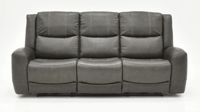 The Hayley Leather Power Sofa is a sleek, modern three-seater with leather upholstery, power reclining end seats, and a stylish, segmented cushion design for both comfort and elegance.