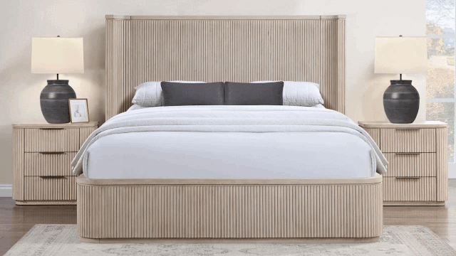 The Henry Queen Bed combines modern elegance with softened edges, reeded detailing, and a sturdy, natural-finish design that eliminates the need for a box spring.