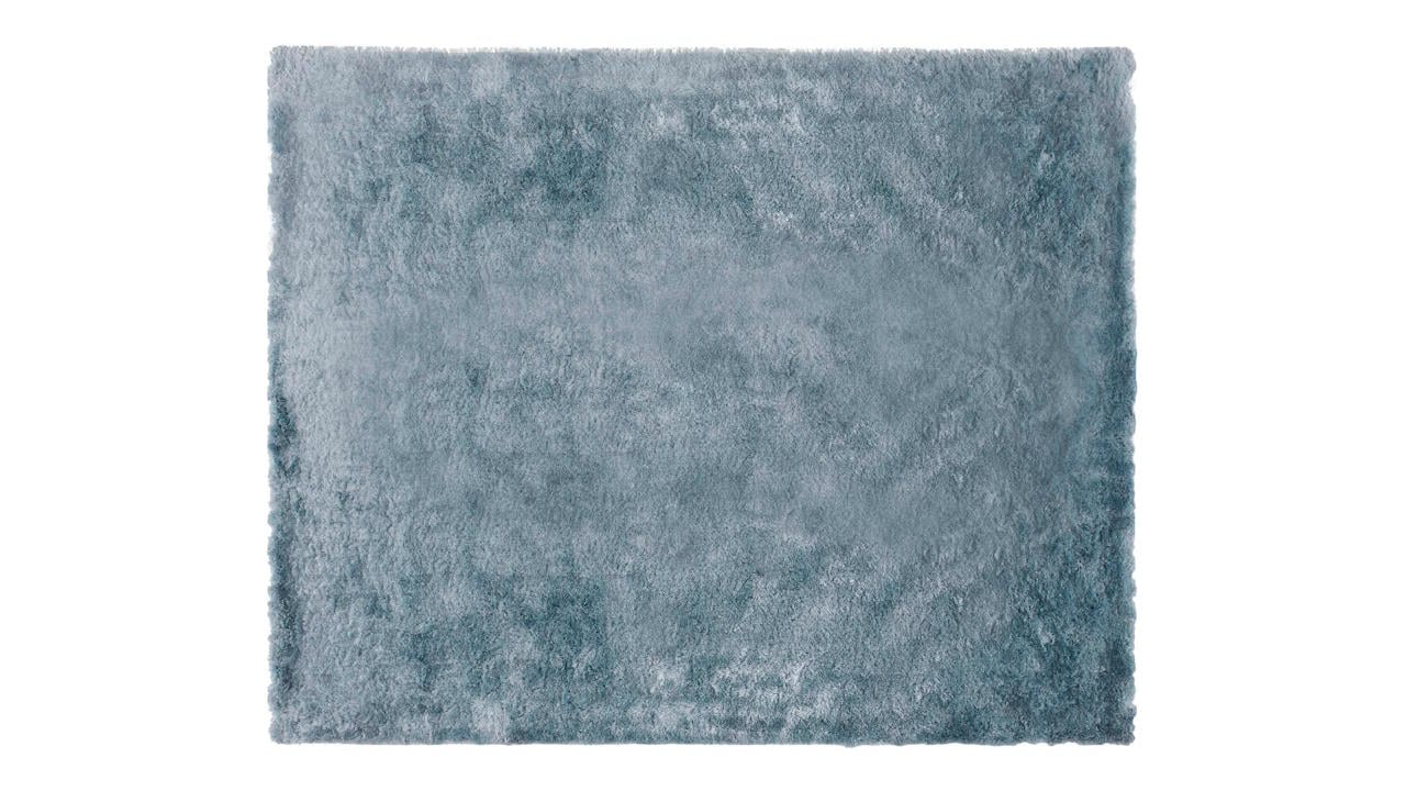 The Indochine Rug in Light Aqua, table-tufted with polyester to mimic the softness of animal fur and boasting a playful sheen, is a luxurious addition to casual, contemporary settings.