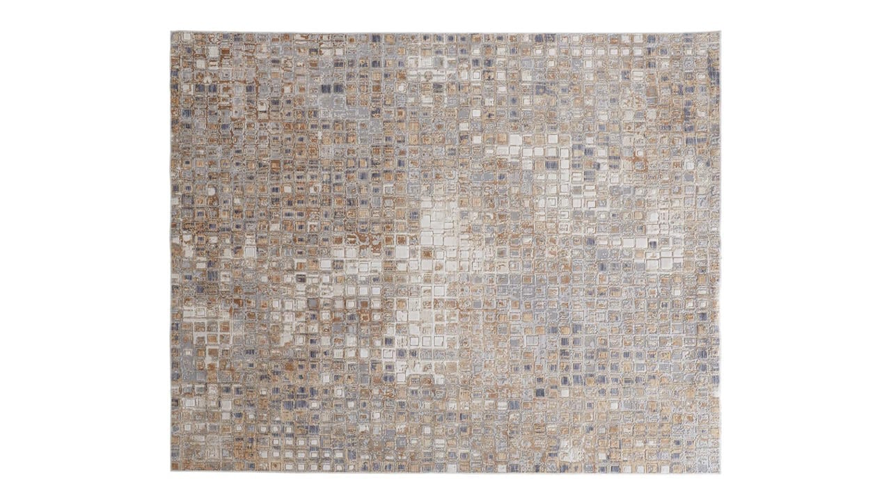 The Laina Rug in Beige & Rust captivates with its unrivaled elegance, featuring a textural high-low effect, soft color palette, and intricate mosaic designs atop a durable drop-stitched Lurex® metallic base, perfect for enhancing any living space.