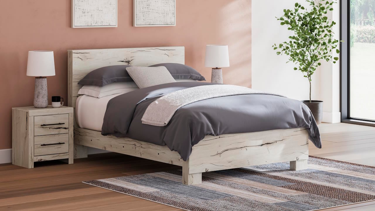 <br />Crafted with engineered wood, including MDF, particleboard, and plywood, along with decorative laminate, this bed offers a perfect harmony of affordability and durability. The charming rustic white finish, coupled with the authentic touch of replicated reclaimed oak grain, adds character to any bedroom space.<br /><br />Included in this set are the panel headboard, footboard, and rails, ensuring a complete and cohesive look. Experience the transformation of your bedroom into a serene sanctuary with the simple yet elegant design of the Lawroy Queen Panel Bed in Off White.","isSoftKitOrContainsAddons":false,"price":349.99,"priceFormatted":"$349.99","oldPrice":349.99,"oldPriceFormatted":"$349.99","discountedPrice":349.99,"discountedPriceFormatted":"$349.99","msrp":439.99,"msrpFormatted":"$439.99","callForPrice":false,"stockQuantity":4,"displayStockAvailability":true,"displayStockQuantity":false,"stockMessage":"In Stock Now","minStockQty":2,"currencyCode":"USD","defaultPictureModel":{"ImageUrl":"https://cdn.homefurn.com/thumbs/0486022_lawroy-queen-bed-off-white_1400.jpeg","ThumbImageUrl":"https://cdn.homefurn.com/thumbs/0486022_lawroy-queen-bed-off-white_100.jpeg","FullSizeImageUrl":"https://cdn.homefurn.com/thumbs/0486022_lawroy-queen-bed-off-white.jpeg","Title":"Picture of Lawroy Queen Bed - Off White","AlternateText":"Picture of Lawroy Queen Bed - Off White","Id":0,"CustomProperties":{}},"pictureModels":[{"ImageUrl":"https://cdn.homefurn.com/thumbs/0486022_lawroy-queen-bed-off-white_1400.jpeg","ThumbImageUrl":"https://cdn.homefurn.com/thumbs/0486022_lawroy-queen-bed-off-white_100.jpeg","FullSizeImageUrl":"https://cdn.homefurn.com/thumbs/0486022_lawroy-queen-bed-off-white.jpeg","Title":"Picture of Lawroy Queen Bed - Off White","AlternateText":"Picture of Lawroy Queen Bed - Off White","Id":0,"CustomProperties":{}},{"ImageUrl":"https://cdn.homefurn.com/thumbs/0486023_lawroy-queen-bed-off-white_1400.jpeg","ThumbImageUrl":"https://cdn.homefurn.com/thumbs/0486023_lawroy-queen-bed-off-white_100.jpeg","FullSizeImageUrl":"https://cdn.homefurn.com/thumbs/0486023_lawroy-queen-bed-off-white.jpeg","Title":"Picture of Lawroy Queen Bed - Off White","AlternateText":"Picture of Lawroy Queen Bed - Off White","Id":0,"CustomProperties":{}},{"ImageUrl":"https://cdn.homefurn.com/thumbs/0486024_lawroy-queen-bed-off-white_1400.jpeg","ThumbImageUrl":"https://cdn.homefurn.com/thumbs/0486024_lawroy-queen-bed-off-white_100.jpeg","FullSizeImageUrl":"https://cdn.homefurn.com/thumbs/0486024_lawroy-queen-bed-off-white.jpeg","Title":"Picture of Lawroy Queen Bed - Off White","AlternateText":"Picture of Lawroy Queen Bed - Off White","Id":0,"CustomProperties":{}},{"ImageUrl":"https://cdn.homefurn.com/thumbs/0486025_lawroy-queen-bed-off-white_1400.jpeg","ThumbImageUrl":"https://cdn.homefurn.com/thumbs/0486025_lawroy-queen-bed-off-white_100.jpeg","FullSizeImageUrl":"https://cdn.homefurn.com/thumbs/0486025_lawroy-queen-bed-off-white.jpeg","Title":"Picture of Lawroy Queen Bed - Off White","AlternateText":"Picture of Lawroy Queen Bed - Off White","Id":0,"CustomProperties":{}},{"ImageUrl":"https://cdn.homefurn.com/thumbs/0486026_lawroy-queen-bed-off-white_1400.jpeg","ThumbImageUrl":"https://cdn.homefurn.com/thumbs/0486026_lawroy-queen-bed-off-white_100.jpeg","FullSizeImageUrl":"https://cdn.homefurn.com/thumbs/0486026_lawroy-queen-bed-off-white.jpeg","Title":"Picture of Lawroy Queen Bed - Off White","AlternateText":"Picture of Lawroy Queen Bed - Off White","Id":0,"CustomProperties":{}}],"productSpecificationAttributes":[{"specificationAttributeId":2,"specificationAttributeName":"Height","valueRaw":"48","ColorSquaresRgb":null,"showOnProductPage":false,"displayOrder":0},{"specificationAttributeId":1,"specificationAttributeName":"Width","valueRaw":"63","ColorSquaresRgb":null,"showOnProductPage":false,"displayOrder":0},{"specificationAttributeId":3,"specificationAttributeName":"Depth","valueRaw":"91","ColorSquaresRgb":null,"showOnProductPage":false,"displayOrder":0},{"specificationAttributeId":5,"specificationAttributeName":"Bed or Mattress Size","valueRaw":"Queen Size","ColorSquaresRgb":null,"showOnProductPage":false,"displayOrder":0},{"specificationAttributeId":18,"specificationAttributeName":"Bed Style","valueRaw":"Panel","ColorSquaresRgb":null,"showOnProductPage":false,"displayOrder":0},{"specificationAttributeId":8,"specificationAttributeName":"Color","valueRaw":"White or Off White","ColorSquaresRgb":"#f8f7f7","showOnProductPage":false,"displayOrder":0}],"isFreeShipping":false},{"attributes":[{"id":66429,"name":"King","productAttributeMappingId":17737,"isPreSelected":false,"pictureId":0}],"productFamilyId":31726,"productId":31006,"sku":"B23133K","gtin":null,"shortDescription":"The Lawroy King Panel Bed in Off White effortlessly combines rustic charm with contemporary elegance, featuring a rustic white finish over replicated reclaimed oak grain for a harmonious bedroom haven.","fullDescription":"Introducing the Lawroy King Panel Bed in Off White, a captivating blend of rustic charm and modern elegance. Embracing the essence of countryside living with a contemporary twist, this king-sized panel bed effortlessly marries farmhouse aesthetics with today's clean-lined appeal. Its rustic white finish, adorned with replicated reclaimed oak grain, brings a sense of warmth and authenticity to any bedroom space.<br /><br />Crafted with engineered wood, including MDF, particleboard, and plywood, along with decorative laminate, this bed strikes the perfect balance between affordability and durability. The rustic white finish, enhanced by the replicated reclaimed oak grain, offers a touch of timeless allure, while the decorative laminate ensures consistent color, pattern, and texture, replicating natural surfaces with remarkable authenticity.<br /><br />Included are the panel headboard, footboard, and rails, each contributing to the bed's simple yet sophisticated design. Transform your bedroom into a serene sanctuary with the Lawroy King