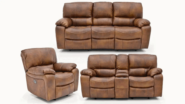 Legend Power Leather Reclining Sofa Set By Man Wah. Includes Reclining Sofa, Reclining Loveseat and Recliner.