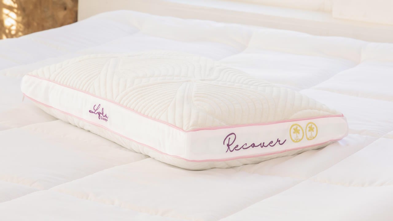 The Lyla Recover Pillow combines cooling Celsius coating, REPREVE® recycled fibers, ventilated memory foam, and a washable, hypoallergenic cover for a sustainable, refreshing, and supportive sleep experience.