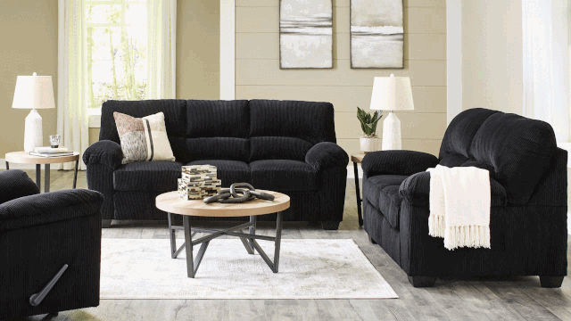 The Simple Joy Sofa in Black is a cozy retreat wrapped in ultra-soft corduroy, perfect for curling up with a good book or binge-watching your favorite shows. Its corner-blocked frame offers durability, while loose seat cushions and attached back cushions provide optimal support. High-resiliency foam wrapped in plush polyester fiber enhances comfort, making it an ideal centerpiece in your living room. With a platform foundation system that resists sagging three times better than traditional spring systems, this sofa maintains a smooth, wrinkle-free appearance for years to come. The exposed faux wood-finished feet add a modern touch to its sleek design.</p>\r\n<p><strong>Simple Joy Loveseat</strong><br />The Simple Joy Loveseat complements the sofa with its inviting charm and contemporary style. Also upholstered in ultra-soft corduroy, it creates a warm atmosphere for relaxing or entertaining. Key features include a corner-blocked frame for added durability, loose seat cushions, and attached back cushions for exceptional support. High-resiliency foam wrapped in thick polyester fiber ensures long-lasting comfort, while the easy-to-maintain polyester upholstery enhances its practicality. Exposed faux wood-finished feet add a subtle elegance, and the platform foundation system guarantees a wrinkle-free look over time.</p>\r\n<p><strong>Simple Joy Rocker Recliner</strong><br />Complete your living area with the Simple Joy Rocker Recliner, designed for ultimate relaxation. Upholstered in the same ultra-soft corduroy, this recliner features a smooth one-pull reclining motion that allows you to effortlessly find your perfect position. Its corner-blocked frame and metal-reinforced seat ensure durability, while the attached cushions provide added convenience. The high-resiliency foam wrapped in thick polyester fiber promises lasting comfort, and the gentle rocking motion enhances the recliner's soothing appeal. Designed for durability, this recliner maintains its stylish look for years to come.</p>\r\n<p>The Simple Joy Sofa Set is the perfect addition to any home, combining modern design with enduring comfort for your relaxed living spaces.</p>","isSoftKitOrContainsAddons":false,"price":1099.99,"priceFormatted":"$1,099.99","oldPrice":1099.99,"oldPriceFormatted":"$1,099.99","discountedPrice":1099.99,"discountedPriceFormatted":"$1,099.99","msrp":1419.97,"msrpFormatted":"$1,419.97","callForPrice":false,"stockQuantity":0,"displayStockAvailability":true,"displayStockQuantity":false,"stockMessage":"Temporarily Out of Stock. Order Now. Will Fulfill When Available. - See Store for Details","minStockQty":2,"currencyCode":"USD","defaultPictureModel":{"ImageUrl":"https://cdn.homefurn.com/thumbs/0514939_simple-joy-sofa-set-black_1400.jpeg","ThumbImageUrl":"https://cdn.homefurn.com/thumbs/0514939_simple-joy-sofa-set-black_100.jpeg","FullSizeImageUrl":"https://cdn.homefurn.com/thumbs/0514939_simple-joy-sofa-set-black.jpeg","Title":"Picture of Simple Joy Sofa Set - Black","AlternateText":"Picture of Simple Joy Sofa Set - Black","Id":0,"CustomProperties":{}},"pictureModels":[{"ImageUrl":"https://cdn.homefurn.com/thumbs/0514939_simple-joy-sofa-set-black_1400.jpeg","ThumbImageUrl":"https://cdn.homefurn.com/thumbs/0514939_simple-joy-sofa-set-black_100.jpeg","FullSizeImageUrl":"https://cdn.homefurn.com/thumbs/0514939_simple-joy-sofa-set-black.jpeg","Title":"Picture of Simple Joy Sofa Set - Black","AlternateText":"Picture of Simple Joy Sofa Set - Black","Id":0,"CustomProperties":{}},{"ImageUrl":"https://cdn.homefurn.com/thumbs/0514940_simple-joy-sofa-set-black_1400.jpeg","ThumbImageUrl":"https://cdn.homefurn.com/thumbs/0514940_simple-joy-sofa-set-black_100.jpeg","FullSizeImageUrl":"https://cdn.homefurn.com/thumbs/0514940_simple-joy-sofa-set-black.jpeg","Title":"Picture of Simple Joy Sofa Set - Black","AlternateText":"Picture of Simple Joy Sofa Set - Black","Id":0,"CustomProperties":{}},{"ImageUrl":"https://cdn.homefurn.com/thumbs/0514941_simple-joy-sofa-set-black_1400.jpeg","ThumbImageUrl":"https://cdn.homefurn.com/thumbs/0514941_simple-joy-sofa-set-black_100.jpeg","FullSizeImageUrl":"https://cdn.homefurn.com/thumbs/0514941_simple-joy-sofa-set-black.jpeg","Title":"Picture of Simple Joy Sofa Set - Black","AlternateText":"Picture of Simple Joy Sofa Set - Black","Id":0,"CustomProperties":{}},{"ImageUrl":"https://cdn.homefurn.com/thumbs/0514942_simple-joy-sofa-set-black_1400.jpeg","ThumbImageUrl":"https://cdn.homefurn.com/thumbs/0514942_simple-joy-sofa-set-black_100.jpeg","FullSizeImageUrl":"https://cdn.homefurn.com/thumbs/0514942_simple-joy-sofa-set-black.jpeg","Title":"Picture of Simple Joy Sofa Set - Black","AlternateText":"Picture of Simple Joy Sofa Set - Black","Id":0,"CustomProperties":{}},{"ImageUrl":"https://cdn.homefurn.com/thumbs/0514943_simple-joy-sofa-set-black_1400.jpeg","ThumbImageUrl":"https://cdn.homefurn.com/thumbs/0514943_simple-joy-sofa-set-black_100.jpeg","FullSizeImageUrl":"https://cdn.homefurn.com/thumbs/0514943_simple-joy-sofa-set-black.jpeg","Title":"Picture of Simple Joy Sofa Set - Black","AlternateText":"Picture of Simple Joy Sofa Set - Black","Id":0,"CustomProperties":{}},{"ImageUrl":"https://cdn.homefurn.com/thumbs/0514944_simple-joy-sofa-set-black_1400.jpeg","ThumbImageUrl":"https://cdn.homefurn.com/thumbs/0514944_simple-joy-sofa-set-black_100.jpeg","FullSizeImageUrl":"https://cdn.homefurn.com/thumbs/0514944_simple-joy-sofa-set-black.jpeg","Title":"Picture of Simple Joy Sofa Set - Black","AlternateText":"Picture of Simple Joy Sofa Set - Black","Id":0,"CustomProperties":{}},{"ImageUrl":"https://cdn.homefurn.com/thumbs/0514945_simple-joy-sofa-set-black_1400.jpeg","ThumbImageUrl":"https://cdn.homefurn.com/thumbs/0514945_simple-joy-sofa-set-black_100.jpeg","FullSizeImageUrl":"https://cdn.homefurn.com/thumbs/0514945_simple-joy-sofa-set-black.jpeg","Title":"Picture of Simple Joy Sofa Set - Black","AlternateText":"Picture of Simple Joy Sofa Set - Black","Id":0,"CustomProperties":{}},{"ImageUrl":"https