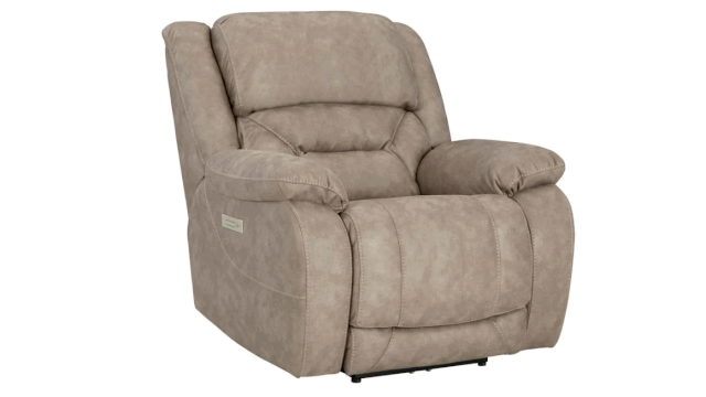 The Skywalker Power Recliner combines a power headrest, lumbar support, an extended footrest, and a Zero Gravity mechanism for enhanced comfort and health benefits, with a USB charging port for added convenience.