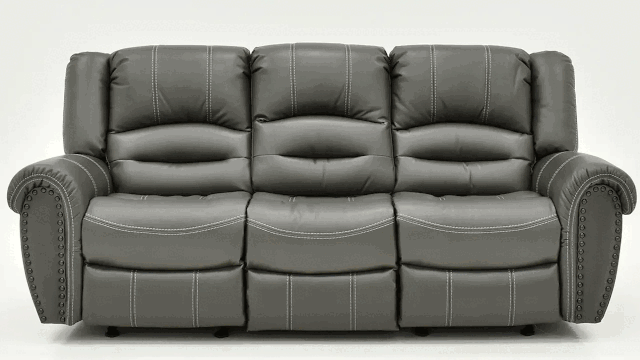 Microfiber Reclining Sofa with Nailhead Trim. Convenient Handle Activation. USB Ports and Power Outlets.
