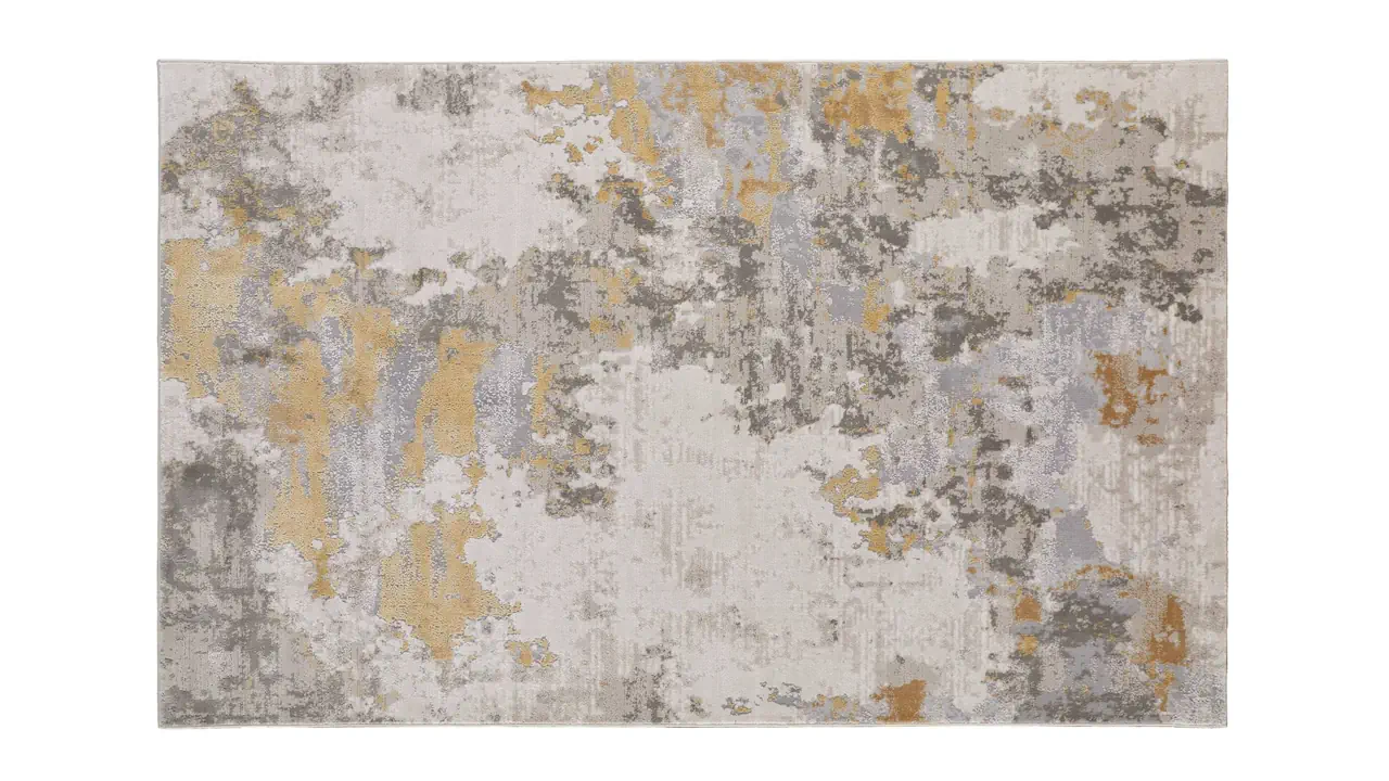 The Waldor Rug in Gold & Birch, featuring a delicate palette and subtle sheen, enhances any space with its captivating aesthetic, boasting dynamic high-low finishes and a luxurious feel, all while requiring minimal maintenance.